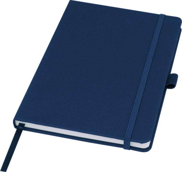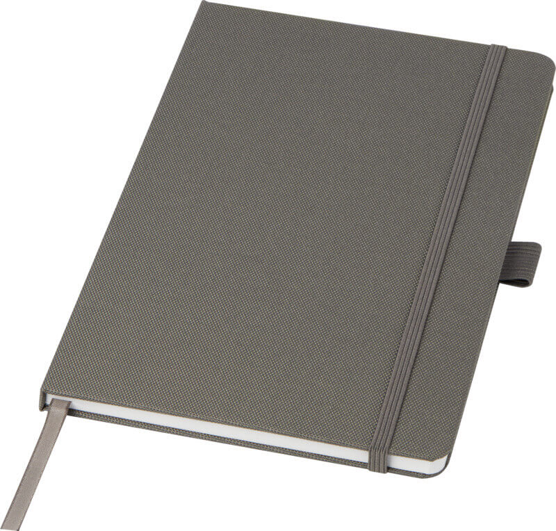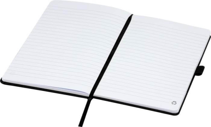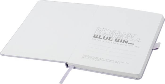 A5-kokoinen 80 arkin muistikirja kovilla kansilla, jonka sivut ovat 70g/m2 kierrätyspaperia valmiilla viivoilla. Tuotteessa lisäksi kynänpidike ja nauhamerkki. Voit kustomoida tuotteen moniväripainatuksella kirjan kanteen etu- tai takapuolelle. Kirja saatavilla yhdeksällä eri värisillä kansilla.